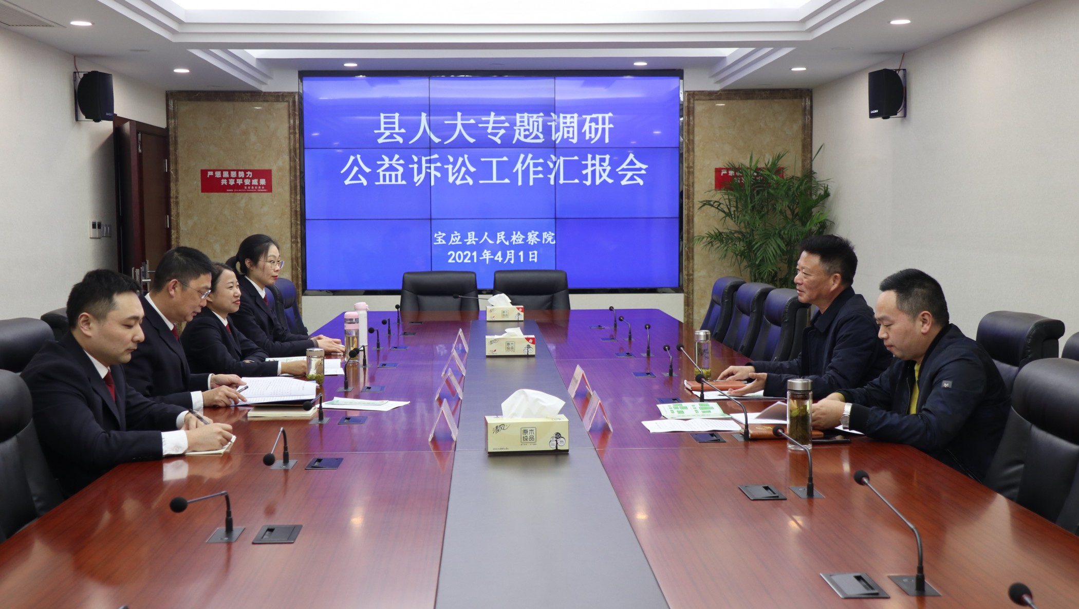 4月1日下午,宝应县人大常委会内司委夏兴丹主任、高斌副主任来检察院院调研公益诉讼工作。院党组成员、副检察长华永及第四检察部全体人员参加座谈。
